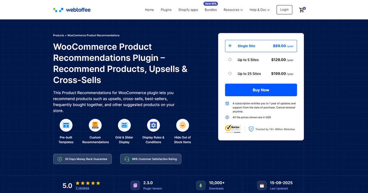 The WooCommerce Product Recommendations plugin from WebToffee is an amazing tool that helps boost your sales and enhance customer engagement in your online store. It lets you create and showcase smart product suggestions, including upsells, cross-sells, best-sellers, and frequently bought together items. With a variety of customizable pre-built templates and sorting options, setting up targeted campaigns to encourage customers to buy more is a breeze.